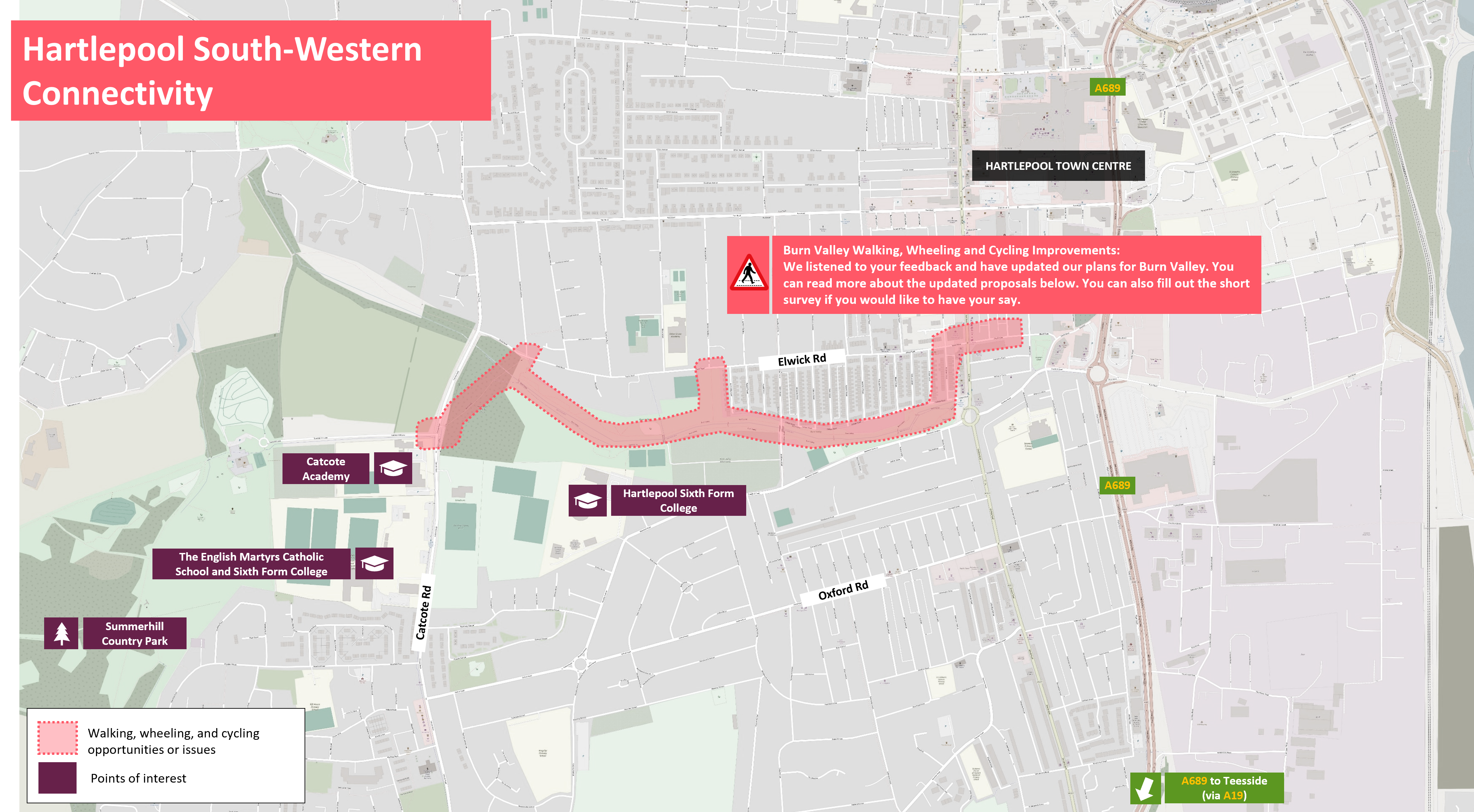 Some people already walk, wheel and cycle in Hartlepool but in certain areas this can feel unsafe, particularly where there is lots of traffic. We want to improve transport links into the town centre to make it safer and easier for people to make more sustainable journeys from the south and west.