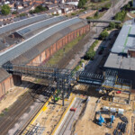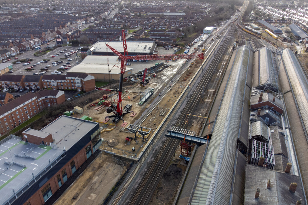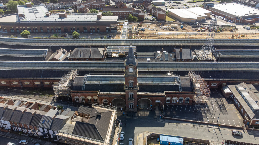 Buildings have been cleared to make way for an extension to the station, with the old and new sites linked by a pedestrian bridge joining the original historic station building with the new modern facility.